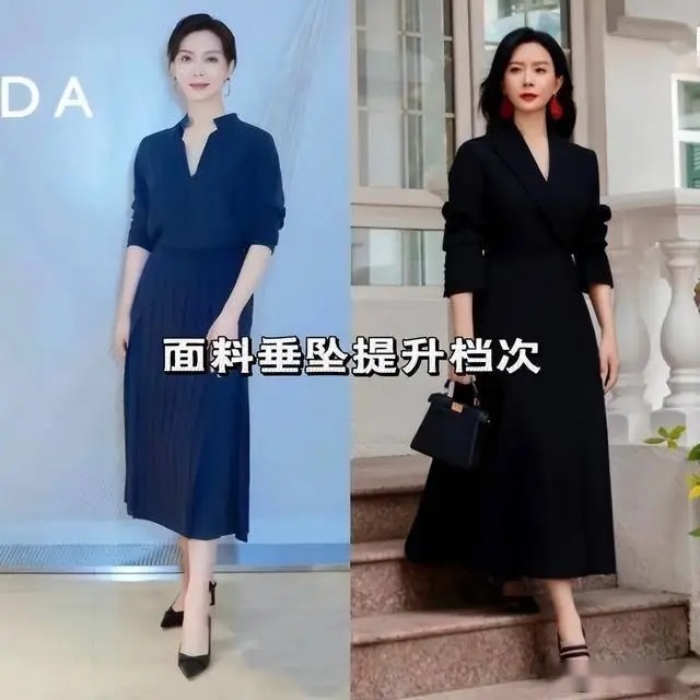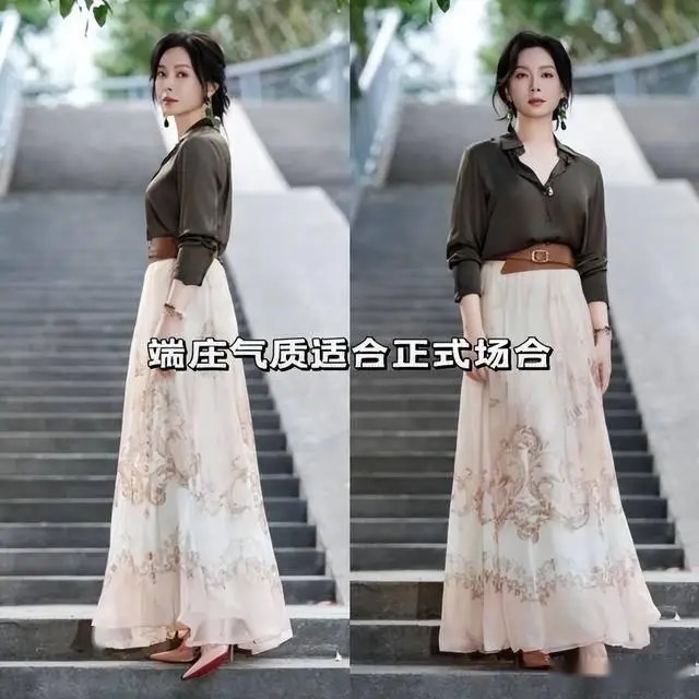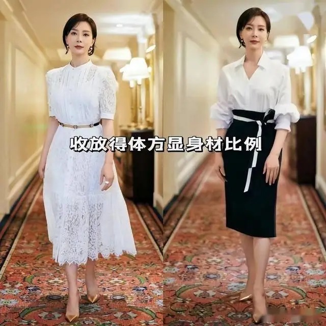 中年女性穿搭的核心是修饰身形,陈数的裙装版型始终遵循 “收腰、放摆、露肤” 的原则,完美兼顾藏肉与显瘦。她偏爱过膝不过踝的裙长,过膝盖就能遮挡大腿,露出小腿清爽又显瘦,避免长裙的拖沓与短裙的暴露。版型上首选收腰 A 字裙、直筒裙或微鱼尾裙,收腰设计清晰勾勒腰线,拔高身材重心,打造三七分比例;A 字裙摆自然散开,遮掩宽胯、假胯宽等问题,直筒裙则修饰腿型,让身形更显挺拔利落。