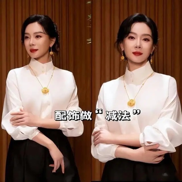 中年女性的优雅,在于 “克制” 二字,陈数的配饰搭配完美诠释了这一点,从不堆砌单品,而是用少量精致配饰点亮造型,凸显品味。她的配饰以珍珠、简约金属、细腰带、小丝巾为主,每一件都恰到好处。同时她坚持 “配饰不超过两件” 的原则,用最少的配饰打造最精致的效果,让整体造型重心始终在裙装本身,而非杂乱的配饰。